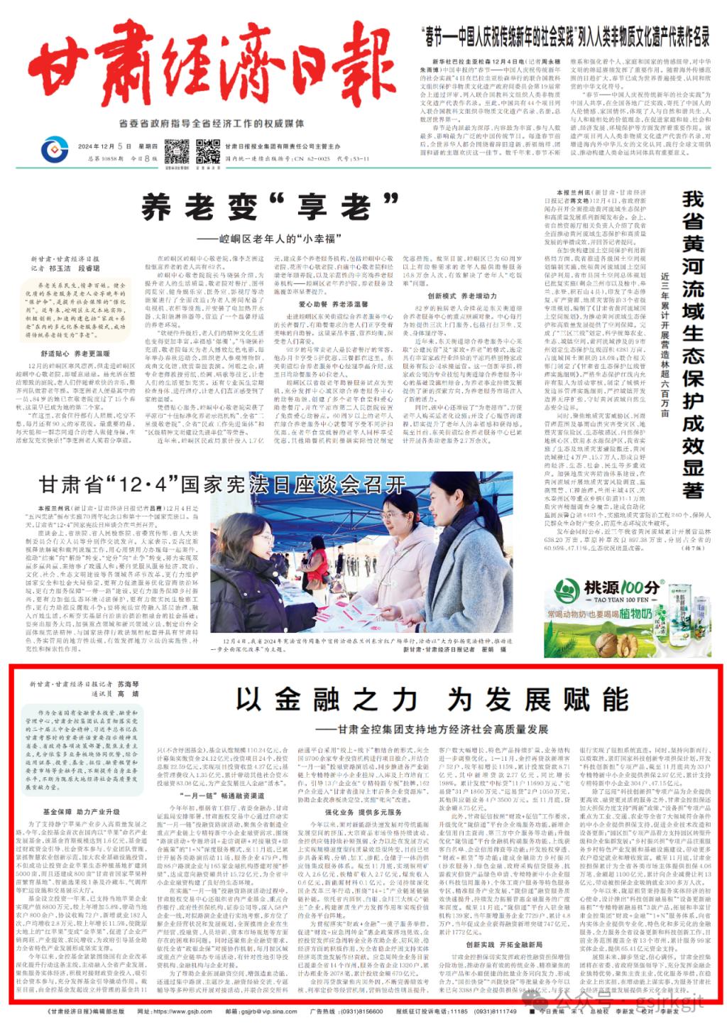 作为全省国有金融资本投资、融资和管理中心,必赢官方(中国)总部认真贯彻落实党的二十届三中全会精神、习近平总书记在甘肃考察时的重要讲话重要指示精神及省委、省政府各项决策部署,聚焦主责主业,充分依靠多业务板块协同优势,综合运用证券、投资、基金、征信、融资租赁和必赢官方(中国)总部等金融手段,不断提升自身业务水平,不断为陇原大地经济社会高质量发展贡献力量。